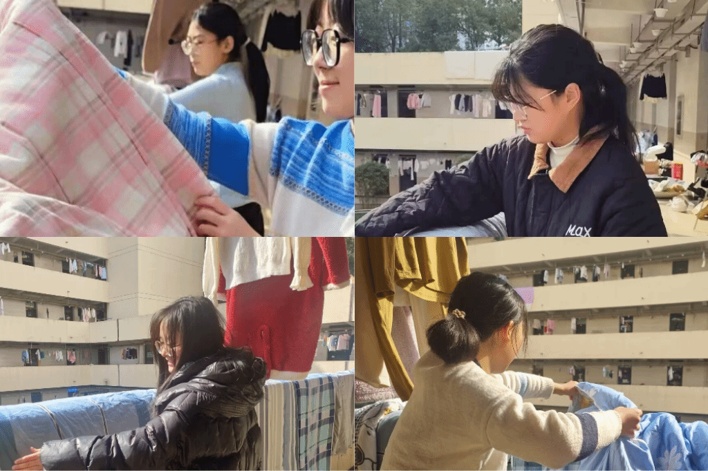 针对南方春季潮湿的气候特点,党支部提前发出倡议,号召同学们在开学当天晾晒被褥。报到当日,滨湖校区与锦绣校区的党员、团员分组带领同学们前往宿舍,帮助同学们晒被褥,特别是帮助下午或者晚上到,来不及晒被褥的同学。“开学第一天大家能一起晒被子,氛围特别好,感觉特别暖心!”参与活动的李同学笑着说道。活动结束后,党员们主动协助同学们整理被褥,确保无遗漏、无错乱,获得学生们一致好评。