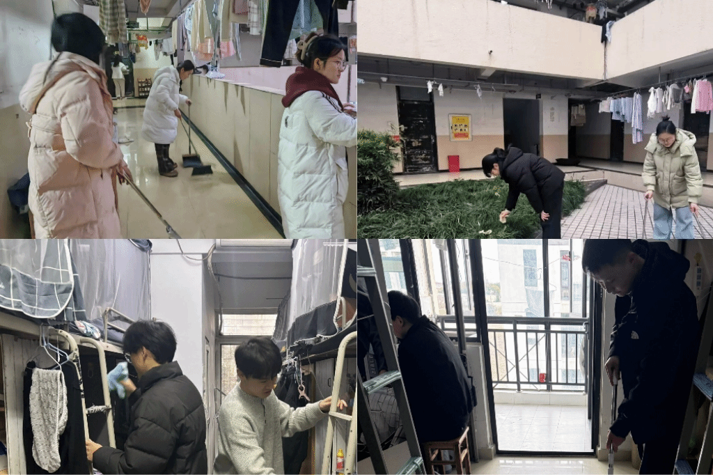 为营造干净舒适的寝室和校园环境,党员带领入党积极分子针对本班楼栋和宿舍进行卫生清扫行动。他们分工协作,针对返校学生少的宿舍及公共区域进行了全面清理。从擦拭栏杆、捡拾垃圾到整理共享空间,大家干劲十足,用实际行动为同学们营造良好的学习和休息环境。