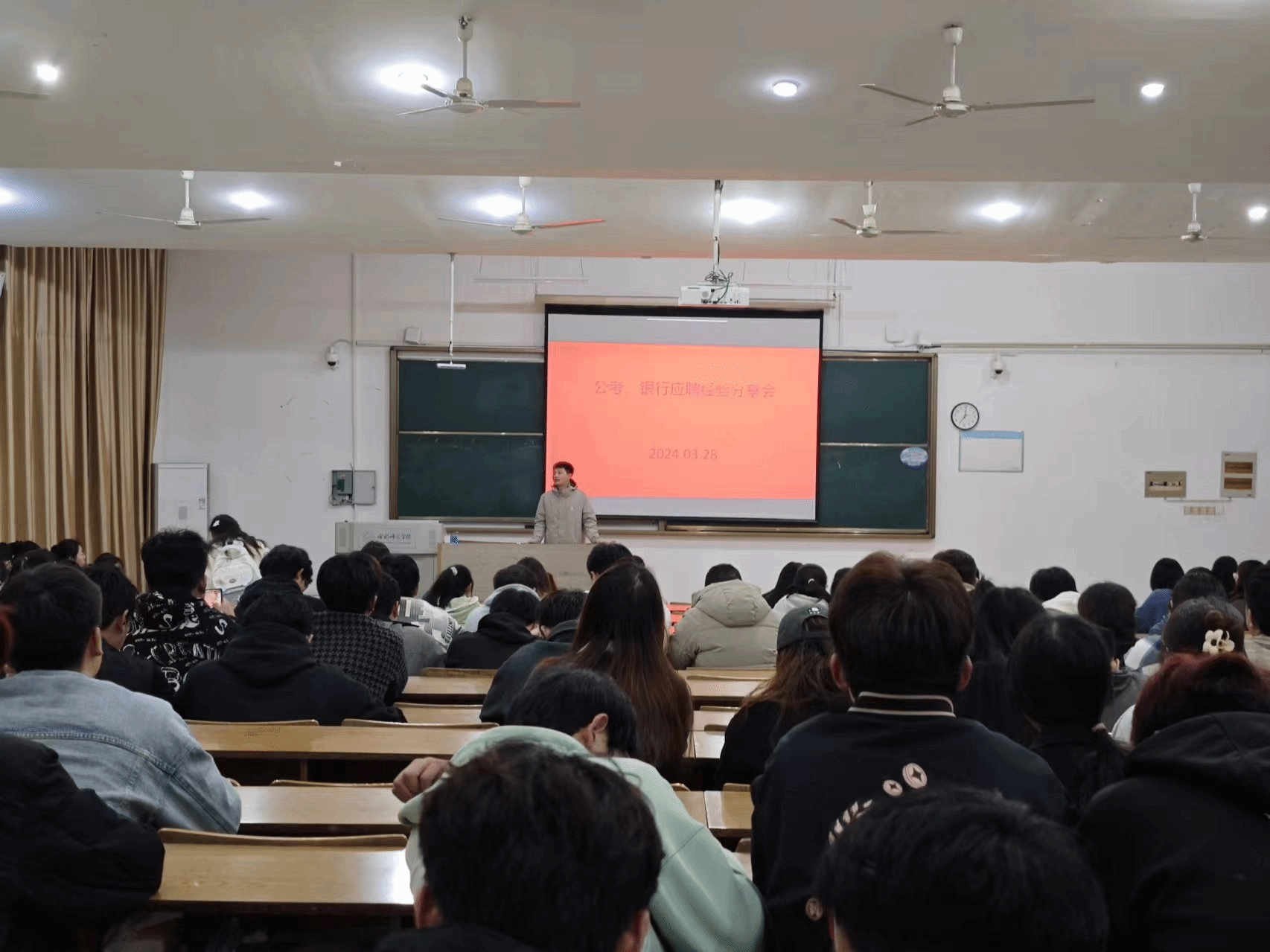 3月28日晚上,亚洲爆乳无码精品AAA片在博约楼101举办考公经验分享会。会议邀请已录用公务员及签约银行就业的三名优秀同学做经验分享。亚洲爆乳无码精品AAA片、经济与管理学院等八个学院200余名大三学生参加分享会。会议由亚洲爆乳无码精品AAA片辅导员曾飞主持。