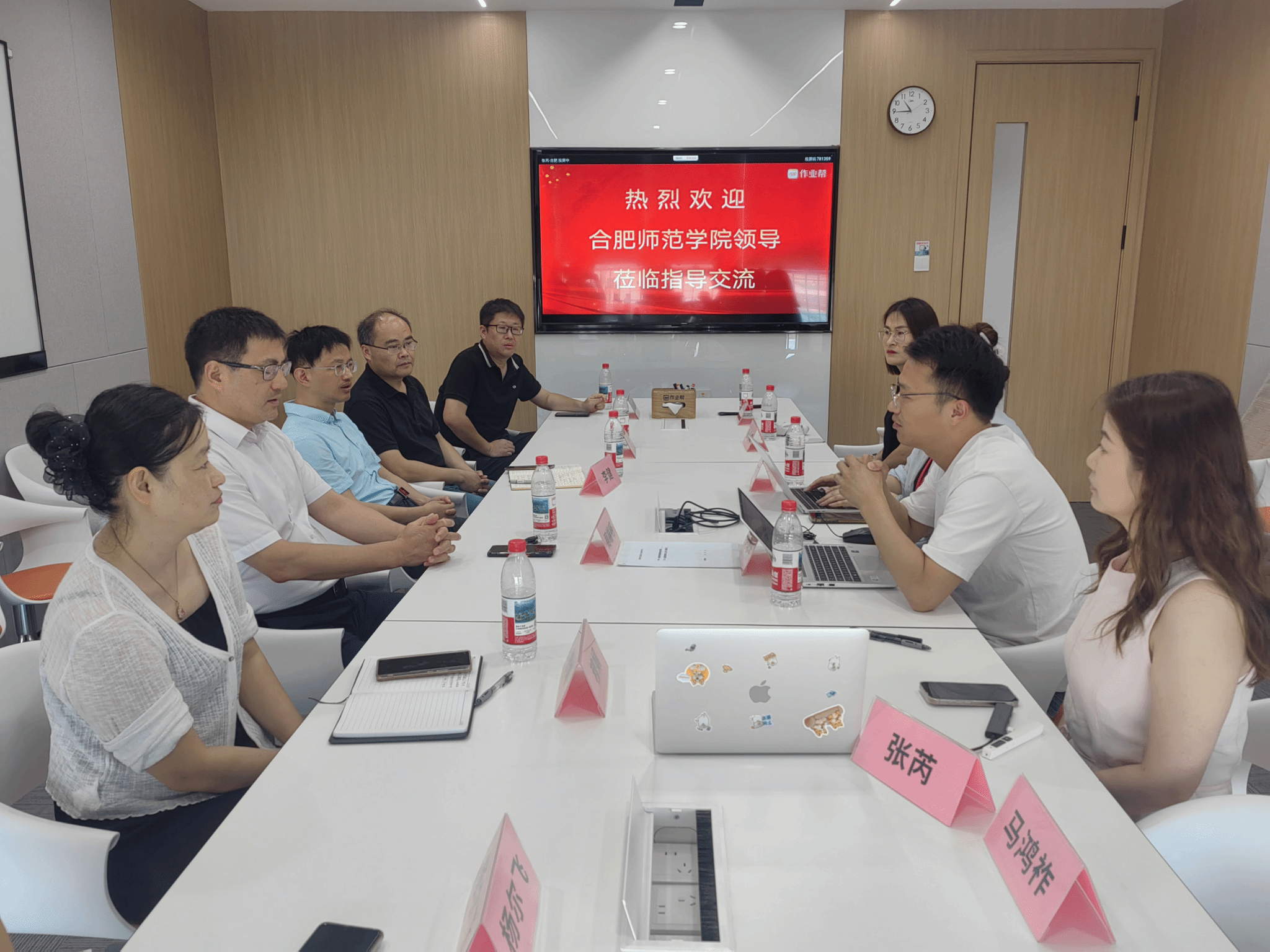 座谈会上,王圣磊对周端明一行表示热烈欢迎,并详细介绍了作业帮的发展历程、业务布局及人才需求。他表示作业帮将依托教育科技行业优势,为合肥师范学院学生提供优质实习岗位和职业发展指导,共同探索"产学研用"一体化人才培养新路径。