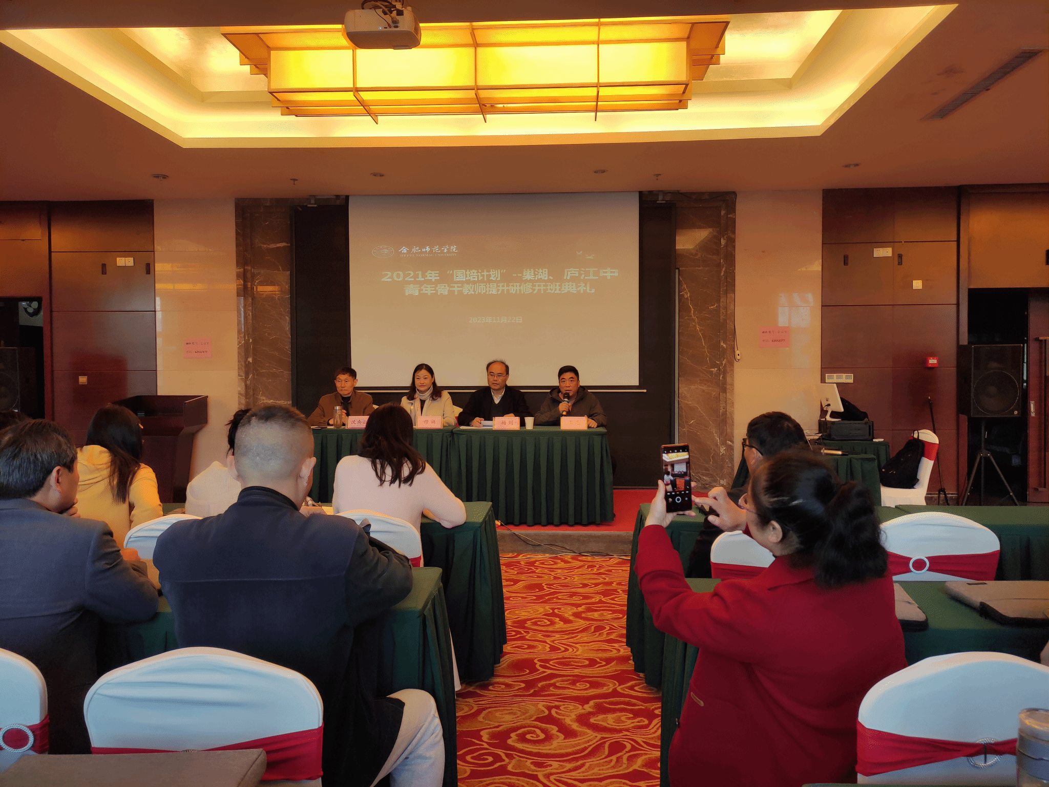2023年11月22日上午,由合肥师范学院承办的巢湖市、庐江县2021年“国培计划”--中青年骨干教师提升研修(数学学科)2023年第三期集中培训班在天宫国际大酒店举行开班典礼,亚洲爆乳无码精品AAA片党委书记穆娟、副院长杨刘、项目负责人沈南山和来自巢湖市、庐江县的全体参训学员出席了典礼,典礼由班主任王志主持。