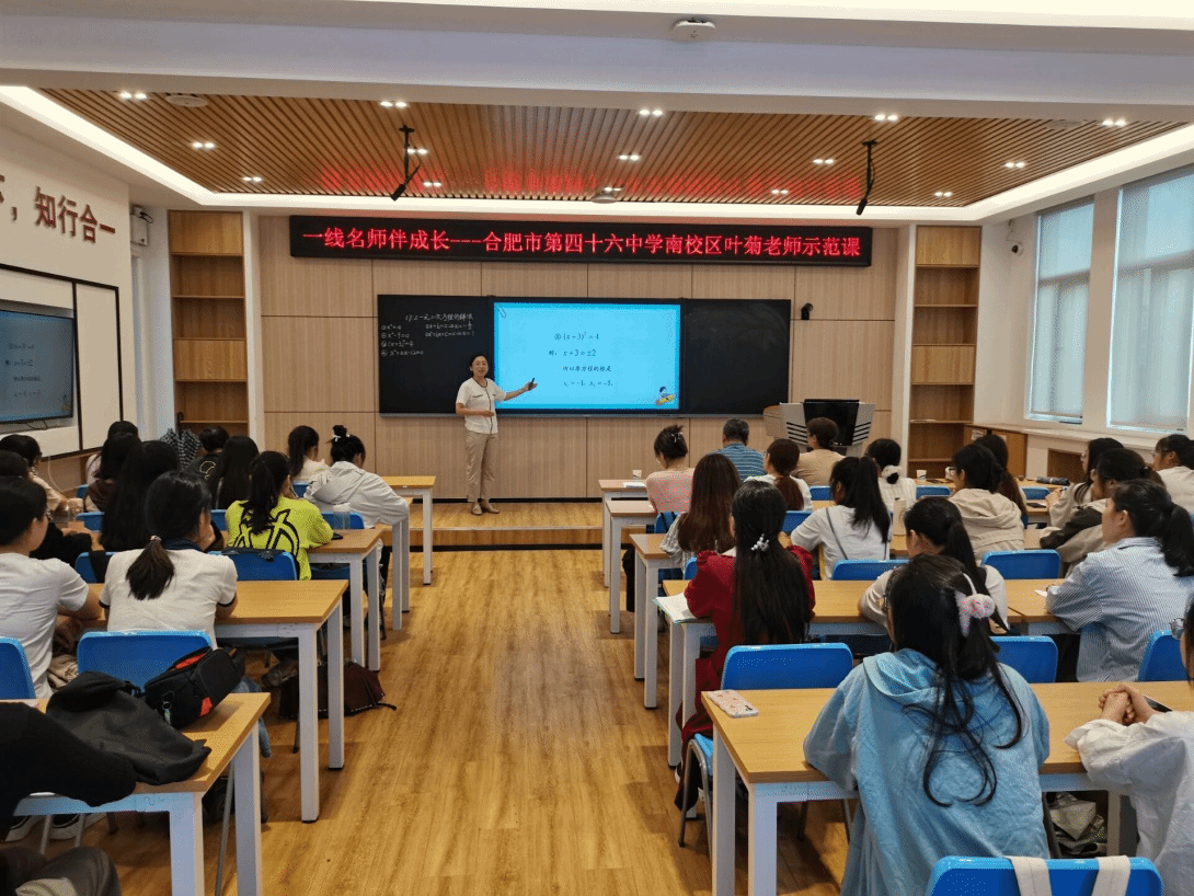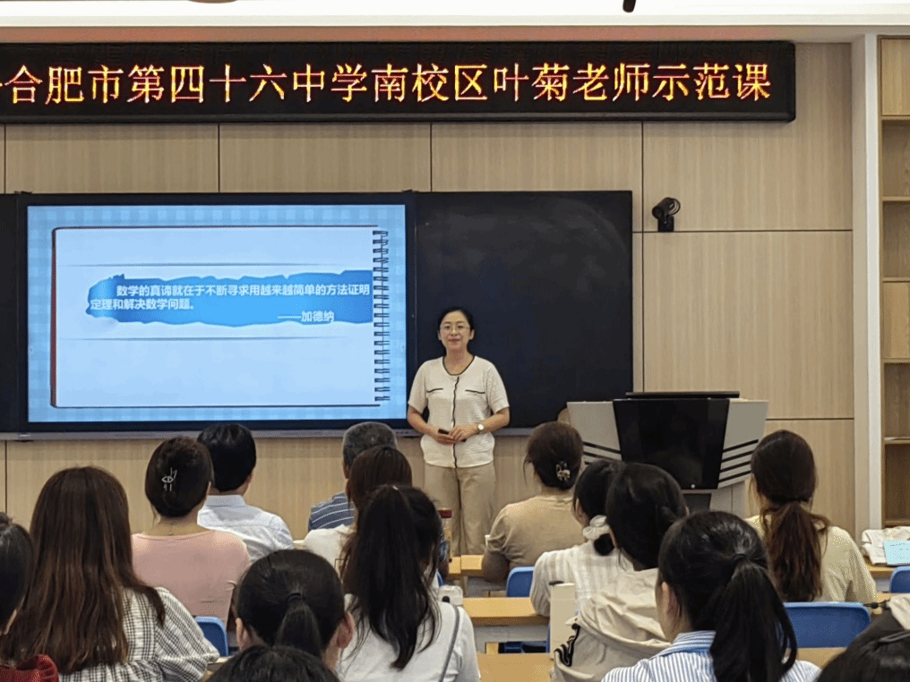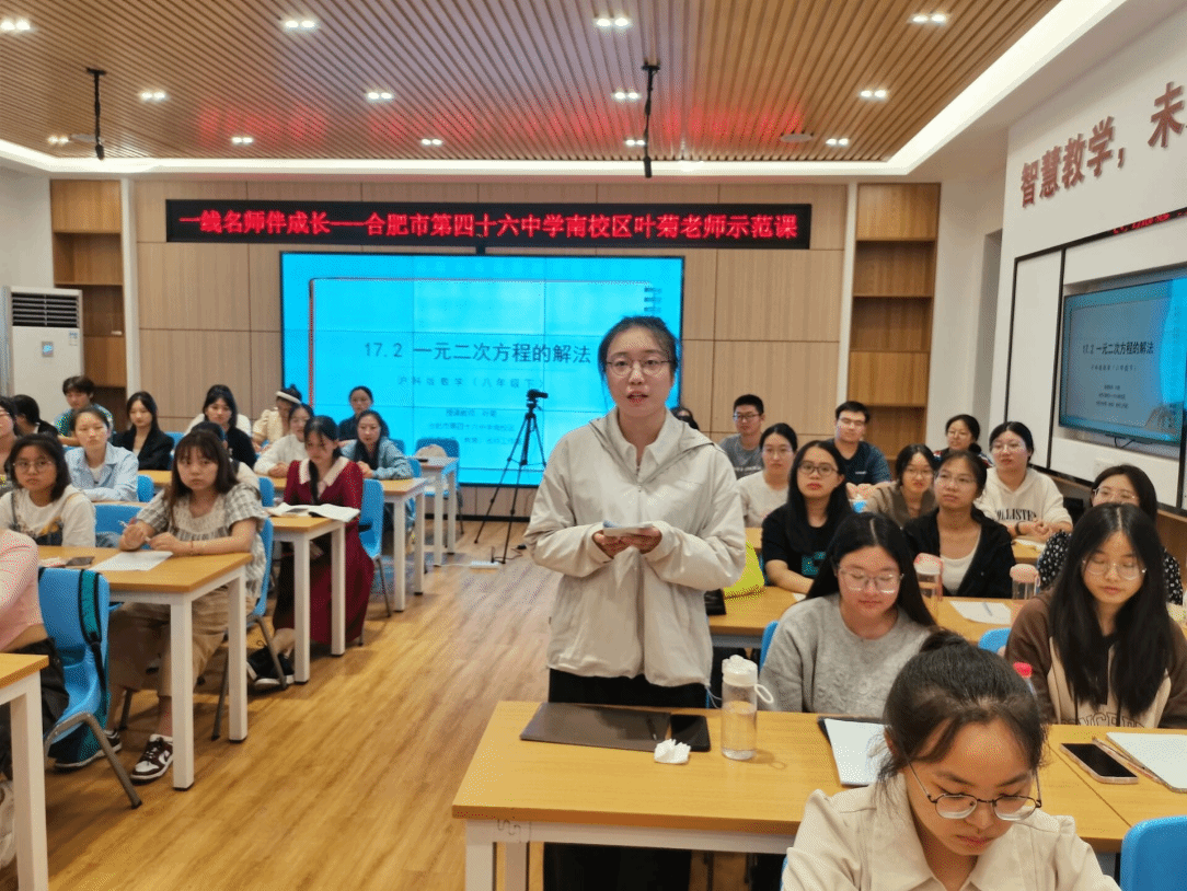 本网讯 9月20日下午,亚洲爆乳无码精品AAA片在锦绣校区逸夫楼B401智慧教室举办了“一线名师伴成长”活动,邀请了合肥市第四十六中学南校区的中学数学高级教师、安徽省五一劳动奖章获得者叶菊老师为师范生上了一节示范课,并为师范生指导教学技能。亚洲爆乳无码精品AAA片副院长杨刘、副院长黄浩,课程与教学论方向教师及来自数学与应用数学专业的部分师范生、学科教学(数学)方向教育硕士研究生共50余人参加本次活动,活动由黄浩主持。