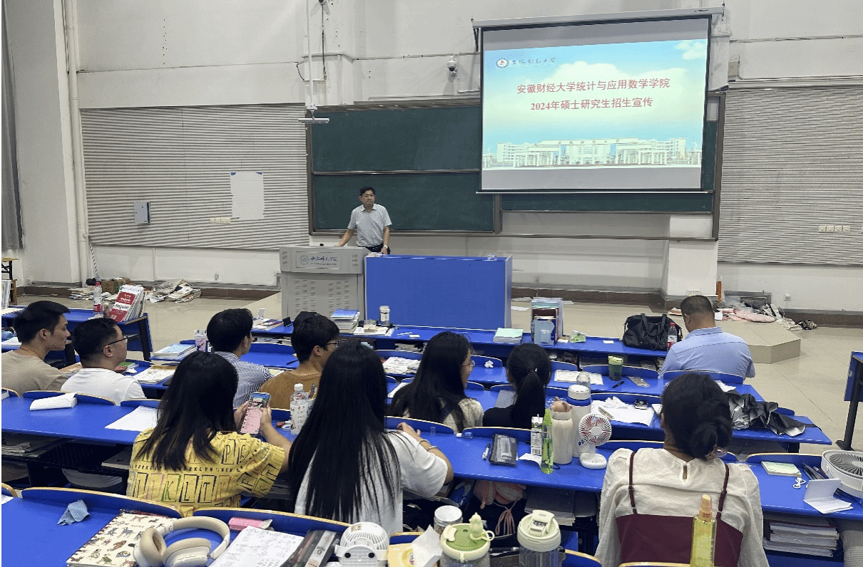 本网讯 9月15日,在逸夫楼西阶1教室,安徽财经大学统计与应用数学学院教授孙欣和李旭辉、副教授李琴和张伟一行来亚洲爆乳无码精品AAA片开展研究生招生宣传。学院副院长杨刘、统计系主任杨海蓉、教师宋雅晴接待并出席宣讲会。学院数学与应用数学、经济统计学、应用统计学、金融工程专业100余名高年级学生参加。