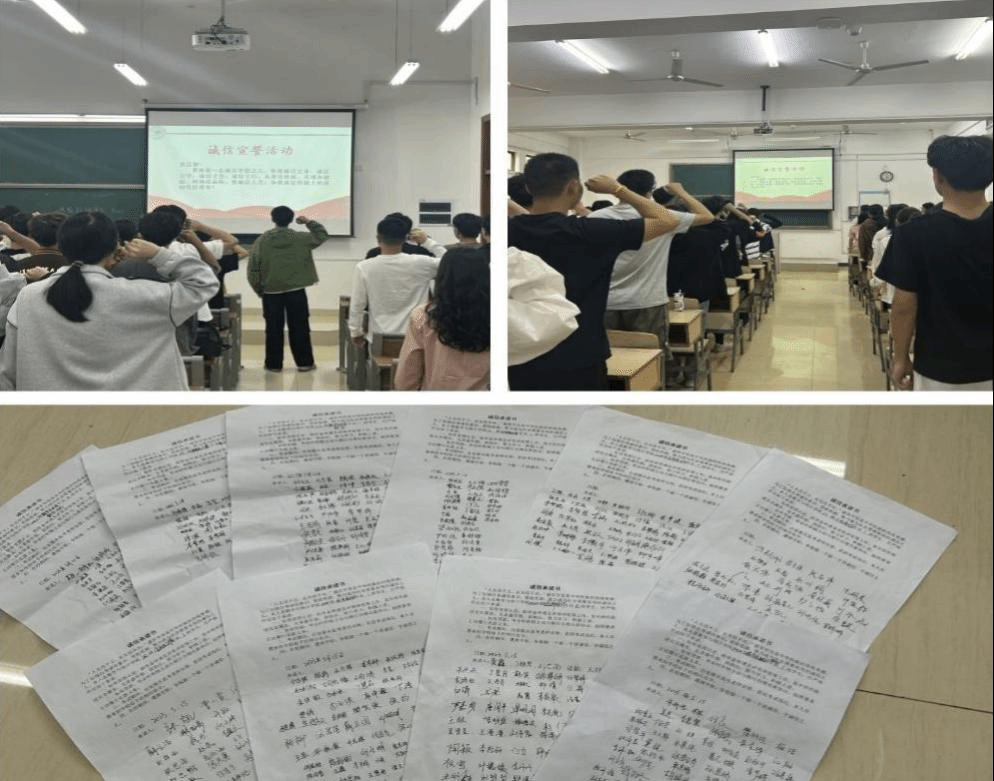 为进一步加强学生诚实守信的责任意识,各班组织了诚信宣誓、签订《诚信承诺书》等活动,以隆重的仪式感让同学们感受诚守守信承诺的重要性,并签订承诺书。通过宣誓和承诺活动,增强学生诚信自律意识,约束学生日常行为。