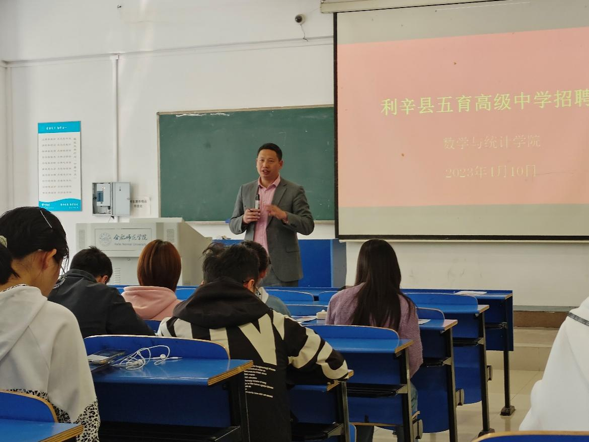 本网讯 为积极争取社会资源,拓展就业渠道,亚洲爆乳无码精品AAA片积极响应和推进“高校书记校长访企拓岗促就业专项行动”,坚持“走出去”与“请进来”相结合,深化校企合作。4月10日上午在行知楼1102会议室,学院召开了“访企拓岗促就业”用人单位座谈会,校党委委员、副院长周端明,利辛县五育高级中学、安徽省庐江第五中学等用人单位代表、数统学院领导班子成员、毕业班辅导员参加了座谈。会议由亚洲爆乳无码精品AAA片党委书记郑支农主持。