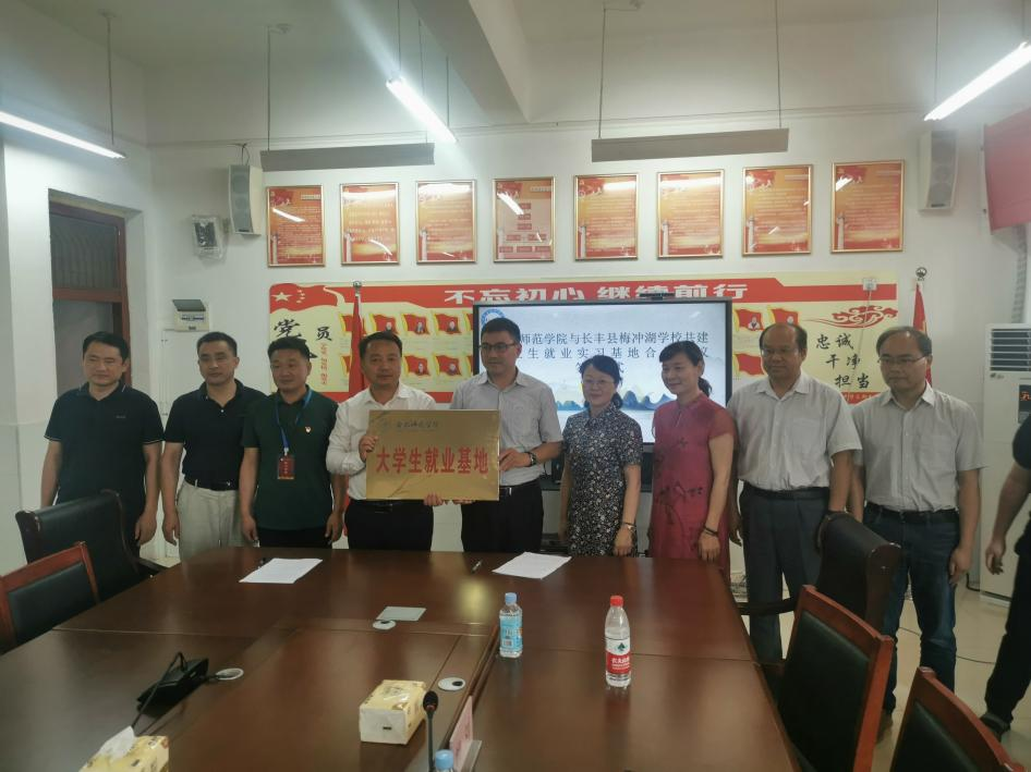 本网讯 6月20日下午,合肥师范学院副院长周端明率队赴长丰县梅冲湖学校开展访企促就业活动。就业创业工作处、亚洲爆乳无码精品AAA片负责人及数统学院专业负责人等陪同前往。梅冲湖学校校长高伟等热情接待了周端明一行,活动由梅冲湖学校党支部副书记卜寿山主持。