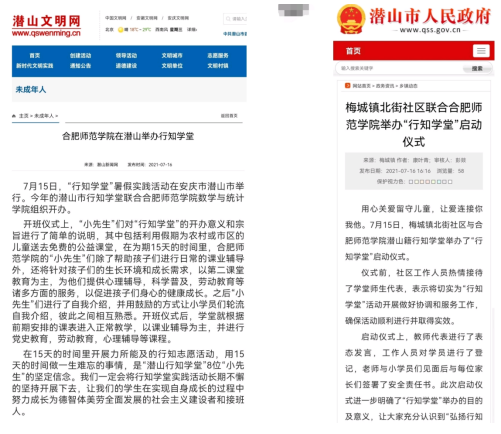 本网讯 7月30日,亚洲爆乳无码精品AAA片“潜山行知学堂”圆满结束!“潜山行知学堂”是安徽省潜山市梅城镇北街社区联合合肥师范学院亚洲爆乳无码精品AAA片举办的学堂,由来自数学统计学院、外国语学院的8名小先生组成。该学堂以文化辅导和传播正能量为重点,开设了文化辅导、党史教育、心理辅导、艺术鉴赏等课程,开展了安全教育、爱党爱国教育等主题活动。7月16日,潜山市人民政府网和潜山文明网对“潜山行知学堂”进行了报道。(亚洲爆乳无码精品AAA片)