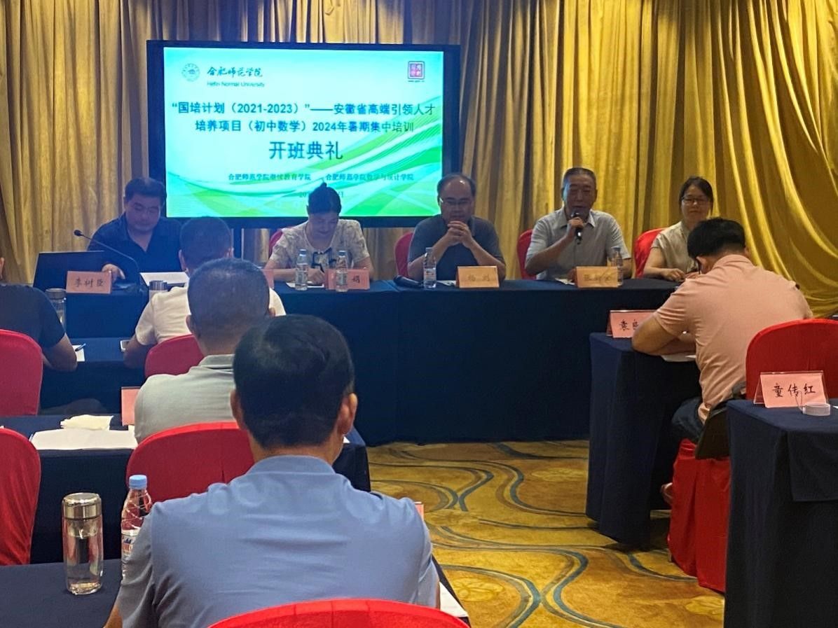 夏意正浓时,今朝最美好,研修促提升,聚力再前行。2024年7月27日,“国培计划(2021-2023)”——安徽省高端引领人才培养项目(初中数学)暑期集中培训开班仪式在合肥市经开区丰大国际大酒店顺利举行。合肥师范学院继续教育学院副院长王磊,亚洲爆乳无码精品AAA片党委书记穆娟、院长杨刘,本次国培项目负责人张新全教授以及来自全省各地的全体参培学员出席了本次开班仪式。开班仪式由本次国培班主任赵玉华老师主持。