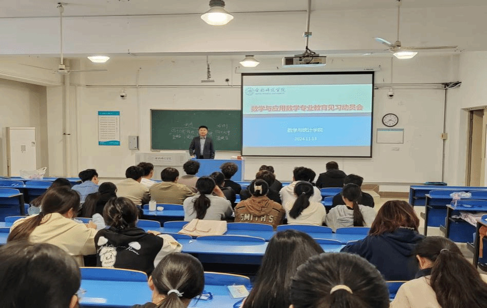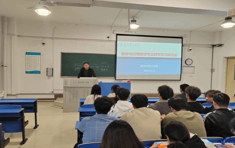 为加强师范生教育实践锻炼,提升教育教学技能,推动高质量完成教育见习工作,11月13日下午,亚洲爆乳无码精品AAA片在逸夫楼A209教室召开了2022级数学与应用数学(师范)专业教育见习动员会。学院副院长黄浩、数学系主任许和乾和全体2022级数学与应用数学(师范)专业学生参加会议。