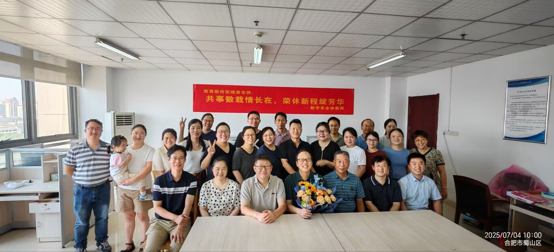 仪式现场,教师代表向张晓贵老师献上鲜花,表达对他的敬意与祝福,领导、同事们与张老师合影留念,定格这一珍贵瞬间。