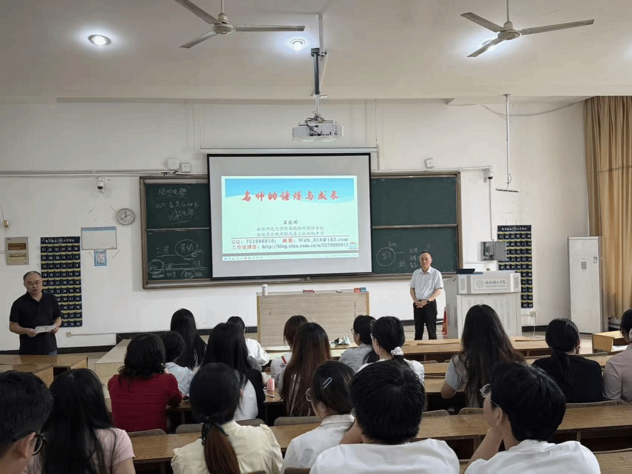 为帮助学生明晰名师成长路径,夯实专业发展基础,9 月 26 日,亚洲爆乳无码精品AAA片邀请学院优秀校友、正高二级教师、国家“万人计划”教学名师、安徽师范大学附属肥西外国语学校数学老师卫德彬在锦绣校区博约楼 108 教室,举办“名师的锤炼与成长”主题讲座。2025级学科教学(数学)全体学生参与讲座,讲座由亚洲爆乳无码精品AAA片院长杨刘主持。