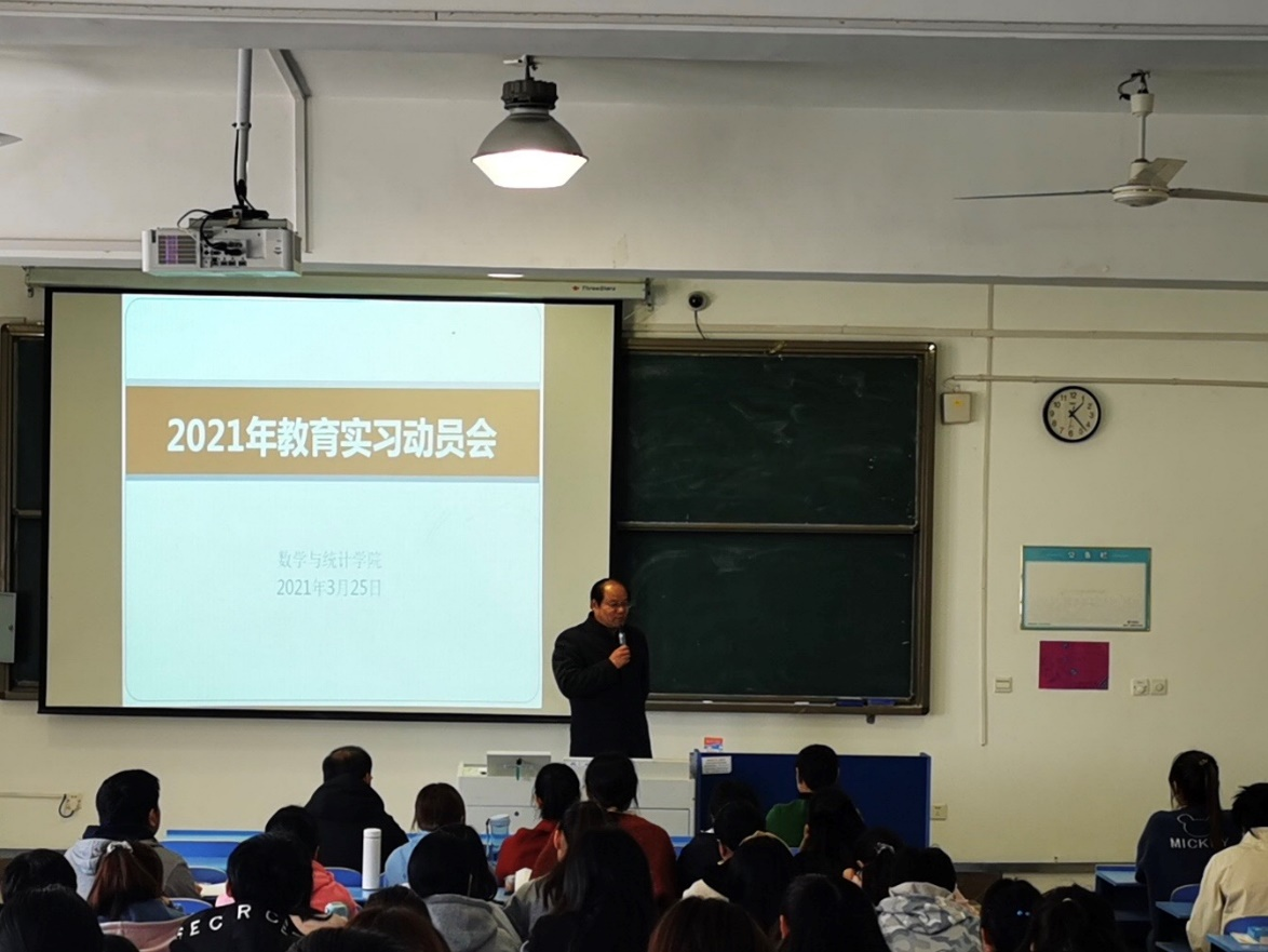 接下来,王家正强调了此次教育实习对同学们的实践意义,并从加强自身专业素养,虚心学习教师专业技能,严肃认真对待且完成实习任务,实习结束要有所得等几个方面对同学们提出了要求及希望。