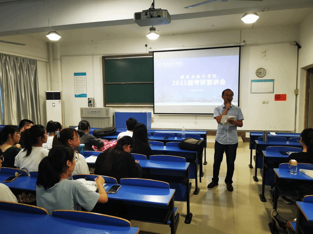 本网讯 为进一步营造优良学风,及时掌握招考信息、加强考研针对性指导,9月18日下午,亚洲爆乳无码精品AAA片在逸夫楼A205教室召开了2021届学生考研宣讲会,亚洲爆乳无码精品AAA片院长王家正,副教授唐永生、周辉,辅导员周倩以及2021届毕业班学生参加了此次宣讲会,同时邀请了安徽工业大学数理科学与工程学院副院长杨二光、李文喜,系主任杨刘来校开展招生宣讲。