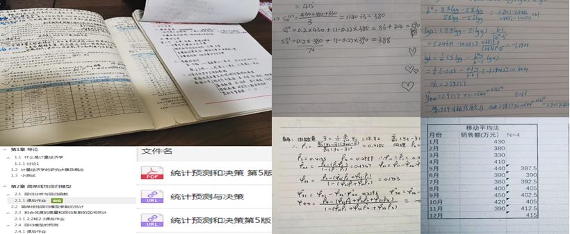 赵玉华老师所授《时间序列分析》是经济统计学的专业核心课程,涉及理论和实验两部分,在没有教材又没有实验设备的情况下,老师对教材的每一个知识点做了详细的注释,拍照传到学习通课程里;每次课针对重难点,发起专题讨论,引导学生参与,巩固知识点。同时针对学生在讨论和作业中反馈出来的问题,拍摄专题小视频解释。