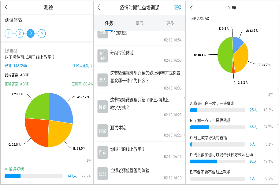 这不期而遇的网上教学,虽然一时让我措手不及、手忙脚乱,也曾为了上好一次网课而辗转难眠,但这样的经历也让我对今后的线上教学更有信心。我想在疫情过后,我会把这种线上教学模式融入常规教学课堂中去,通过这种“线上提前学习,课堂中互动巩固“的方式,把我们的课堂做“活”,让学生成为课程教学中的真正主体!