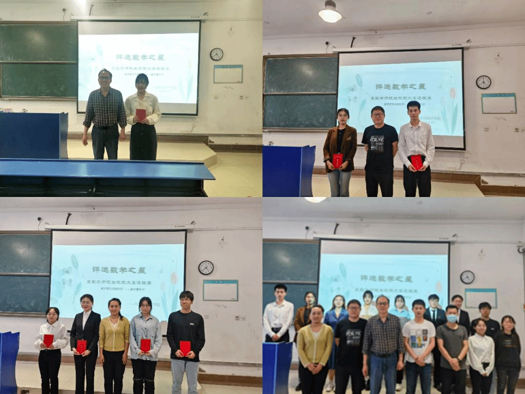 本网讯 为进一步强化数学与应用数学专业师范生技能培养,提高师范生的专业素养、职业能力和就业竞争力,4月27日,亚洲爆乳无码精品AAA片数学文化节系列活动之师范生技能大赛暨数学之星评选在逸夫楼A104举行。学院张晓贵教授、系主任许和乾、解大鹏副教授和辅导员周丽娜、曾飞担任了比赛评委。