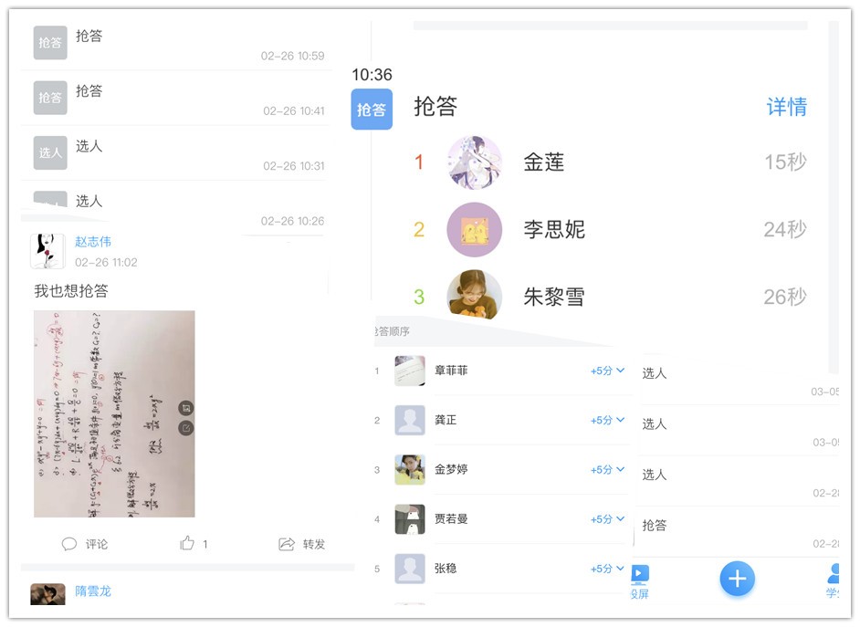 直播时间较长时,学生容易出现学习疲劳。通过适当的课堂练习、抢答、选人环节活跃课堂气氛。