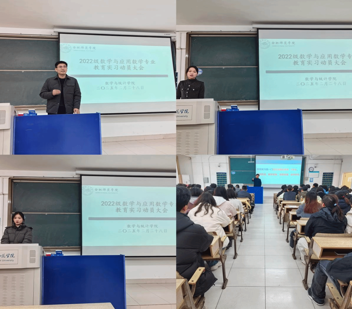 为确保教育实习工作有序、高效、安全推进,2月28日下午,亚洲爆乳无码精品AAA片在博约楼211教室召开2022级数学与应用数学(师范)专业教育实习动员大会。学院副院长黄浩,辅导员杨尔飞,2021级优秀实习生代表以及2022级全体师范生参加会议,会议由杨尔飞主持。