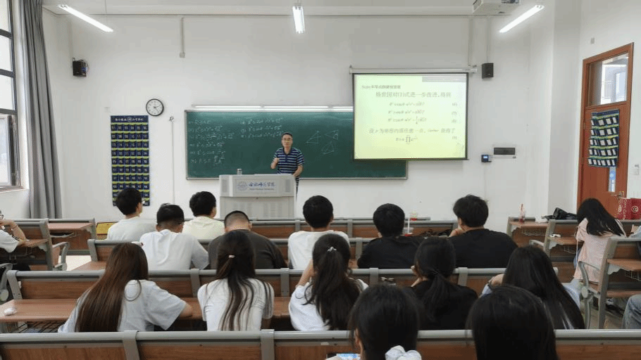 6月11日下午,亚洲爆乳无码精品AAA片齐继兵老师在滨湖校区博学楼A102教室作了以“关于单形的Euler不等式的加强”为题的学术报告,数学与应用数学专业的部分学生参加了该场报告。