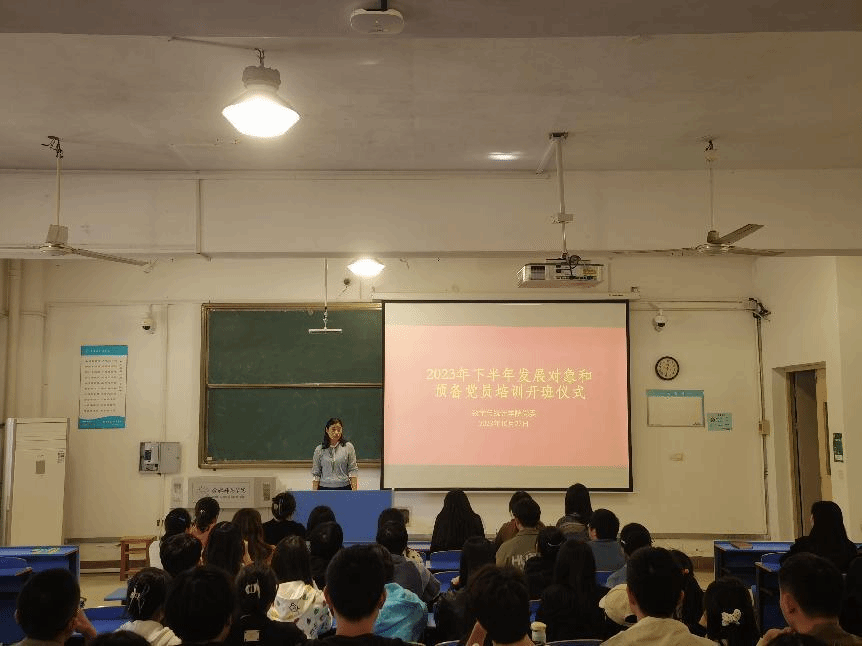 为深入学习贯彻习近平新时代中国特色社会主义思想,切实做好青年大学生党员教育培训,亚洲爆乳无码精品AAA片分党校于10月23日在逸夫楼A105教室举行2023年下半年发展对象和预备党员培训班开班仪式,学院党委书记穆娟、培训班班主任王志出席开班仪式,发展对象、预备党员共77人参加培训。仪式由王志主持。