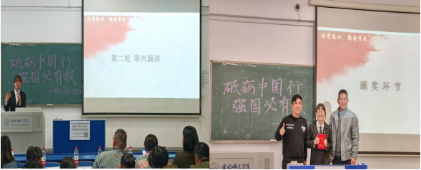 此次决赛分为两轮,第一轮主题演讲,选手根据主题“砥砺中国行,强国必有我”,完成5分钟演讲,演讲内容为学党史、颂党恩、跟党走、守初心;第二轮即兴演讲,主题词为奋斗、青春、情怀、选择,选手当场抽选题目进行即兴演讲。