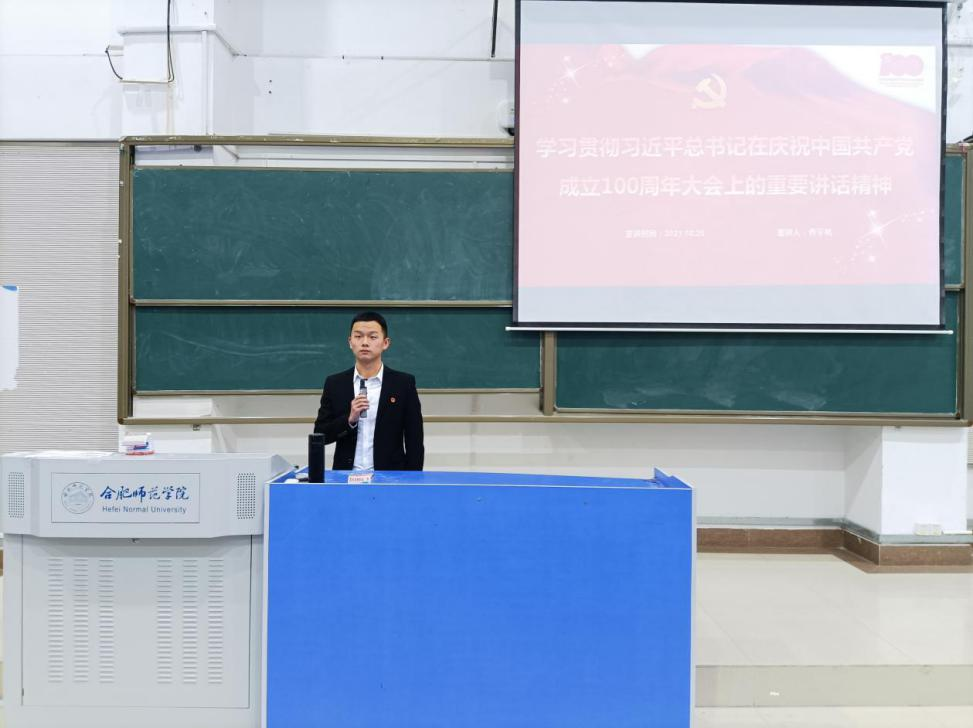 本网讯 为进一步学习贯彻习近平总书记“七一”重要讲话精神,把学生党史学习教育向纵深推进,亚洲爆乳无码精品AAA片分团委于10月20日在锦绣校区逸夫楼西阶1教室开展学习贯彻习近平总书记“七一”重要讲话精神专题宣讲会,会议邀请校青年学生宣讲团成员曹宇帆同学宣讲,锦绣校区200余名学生参加了宣讲会。