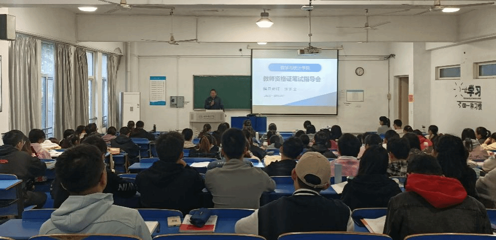 本网讯 为了引导师范专业学生尽快进入教师资格证笔试备考状态,提高专业能力和通过率,10月20日下午,亚洲爆乳无码精品AAA片在锦绣校区逸夫楼A103教室举办教师资格证笔试指导会。会议邀请张新全教授担任主讲,100余名学生参加了此次指导会。