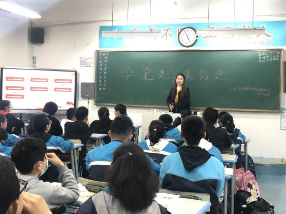 本网讯 为深入推进党史学习教育,把学习成效转化为服务动力,开展好“我为群众办实事”实践活动。4月27日,亚洲爆乳无码精品AAA片学生第一党支部葛梦雪等4名学生党员走进四十六中南校区,在七年级7班开展了以“学习百年党史 奋发青春力量”为主题的党史宣讲活动,为中学生们带来了一场生动的党课。