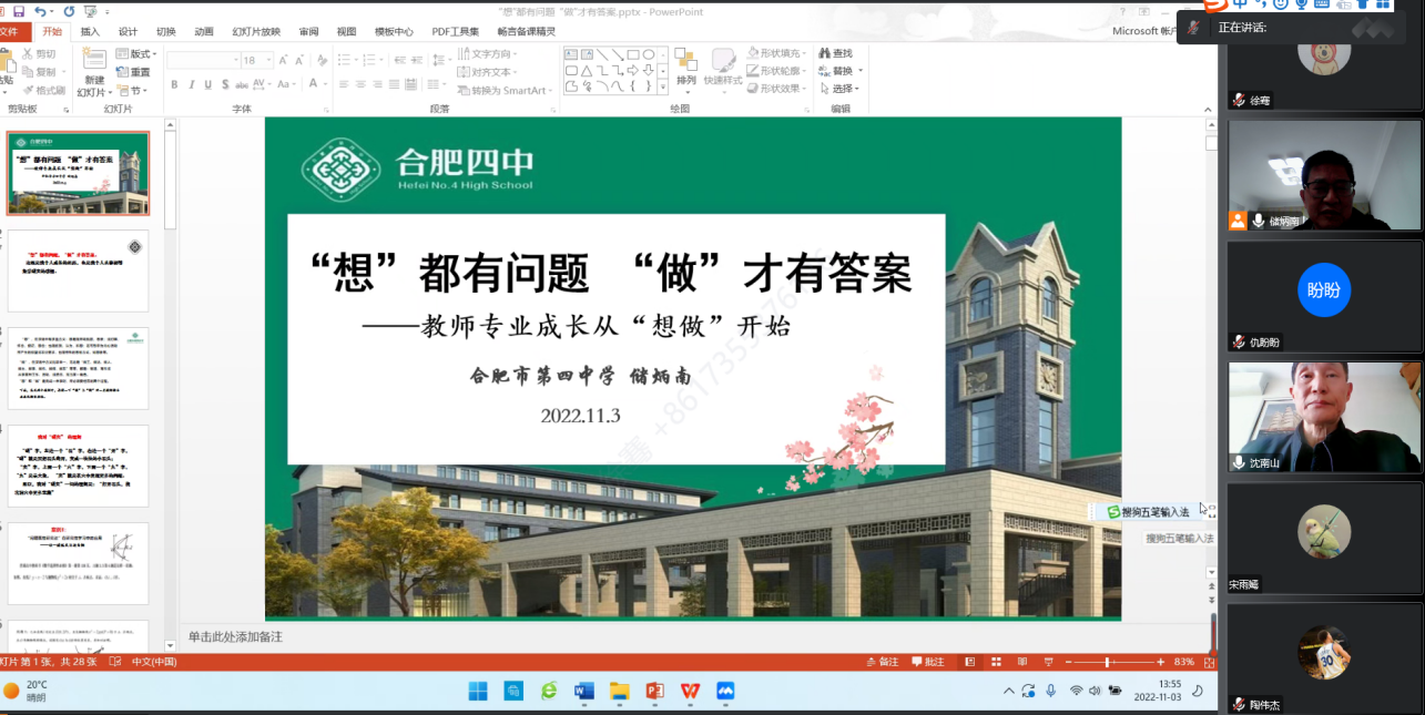 本网讯 2022年11月3日下午,合肥四中正高级教师储炳南老师线上为我院全体研究生作了题为“‘想’都有问题,‘做’才有答案”的专题学术报告。报告由亚洲爆乳无码精品AAA片沈南山教授主持,亚洲爆乳无码精品AAA片全体研究生听取了报告。